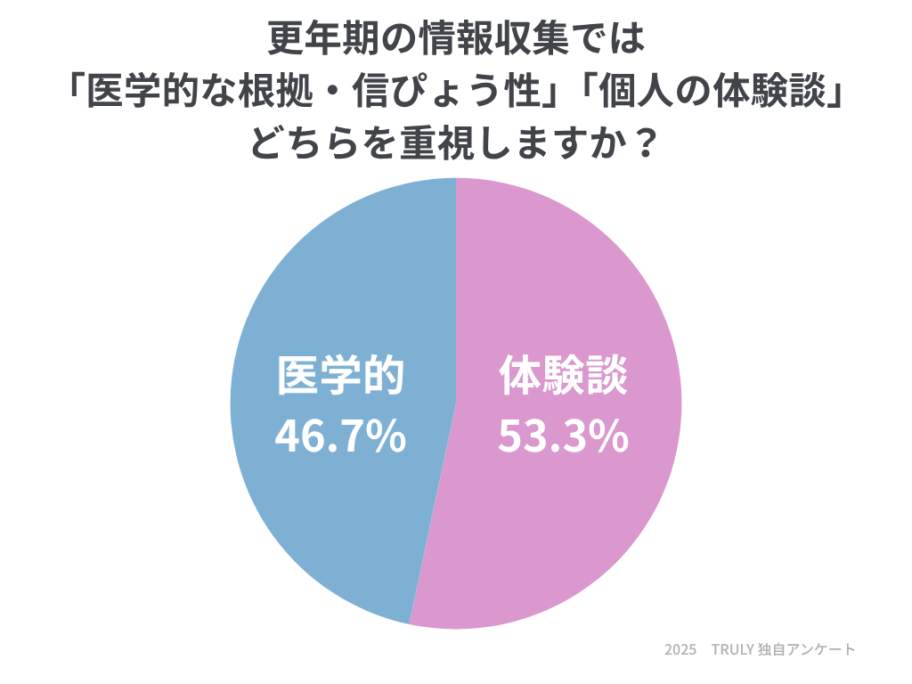 どちらも重視しているけれど、あえて選ぶなら……という回答が多かったことからも、みなさんが更年期についての情報をうまく集めていることが見て取れました。